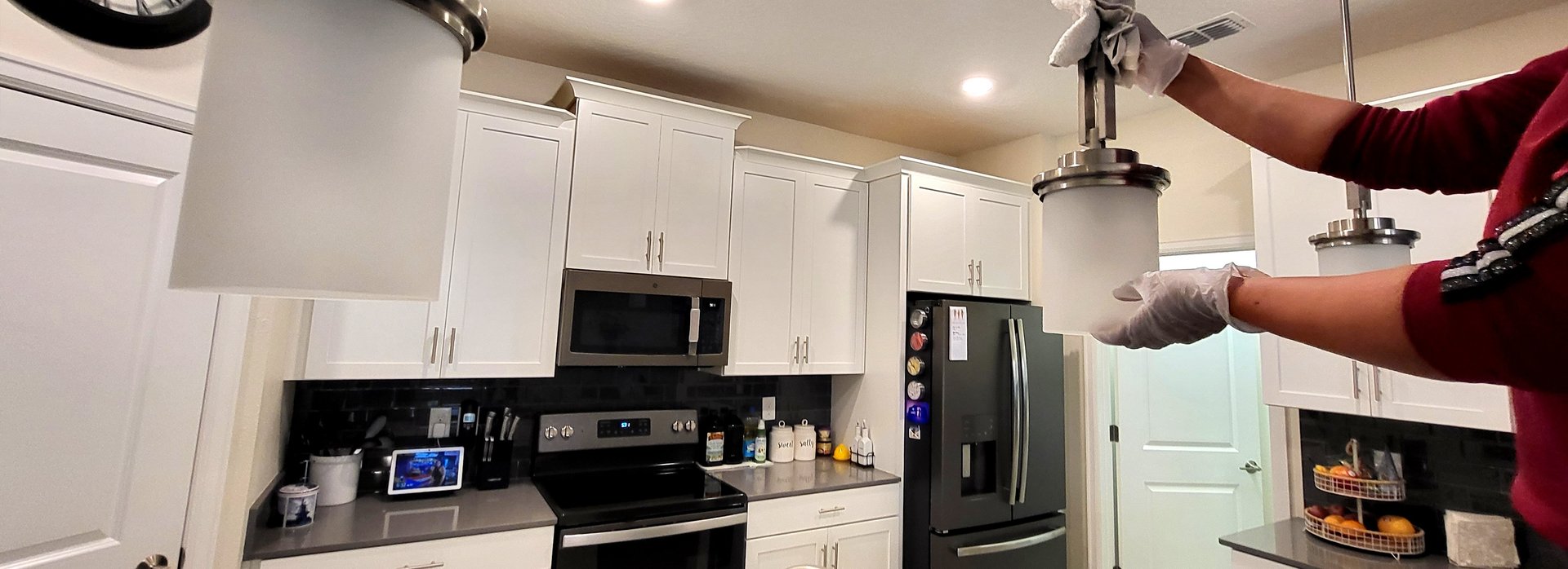 All included in Standard cleaning + Deep cleaning + Attention to detail in terms of cleaning all cleaning supplies inside the bathrooms, behind the stove, behind the refrigerator and other places in the house will be moved to provide better cleaning. Inside and on top of cabinets.